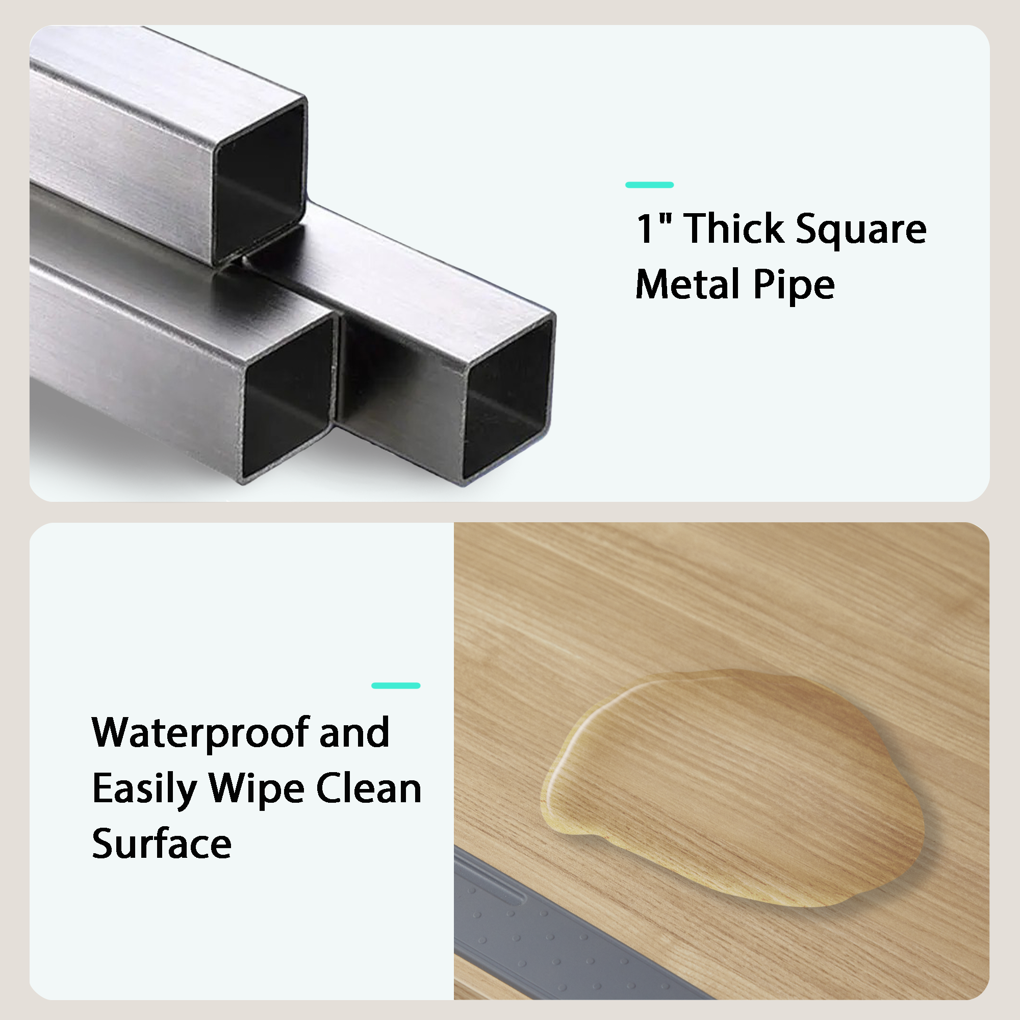 360° Swivel Wheels for Effortless Movement: Equipped with 360° swivel wheels, the desk can be easily maneuvered around tight spaces or across rooms. The wheels allow for smooth, multidirectional movement, making it ideal for users who need a flexible workstation. Additionally, the wheels can lock in place when needed, ensuring stability while you work.